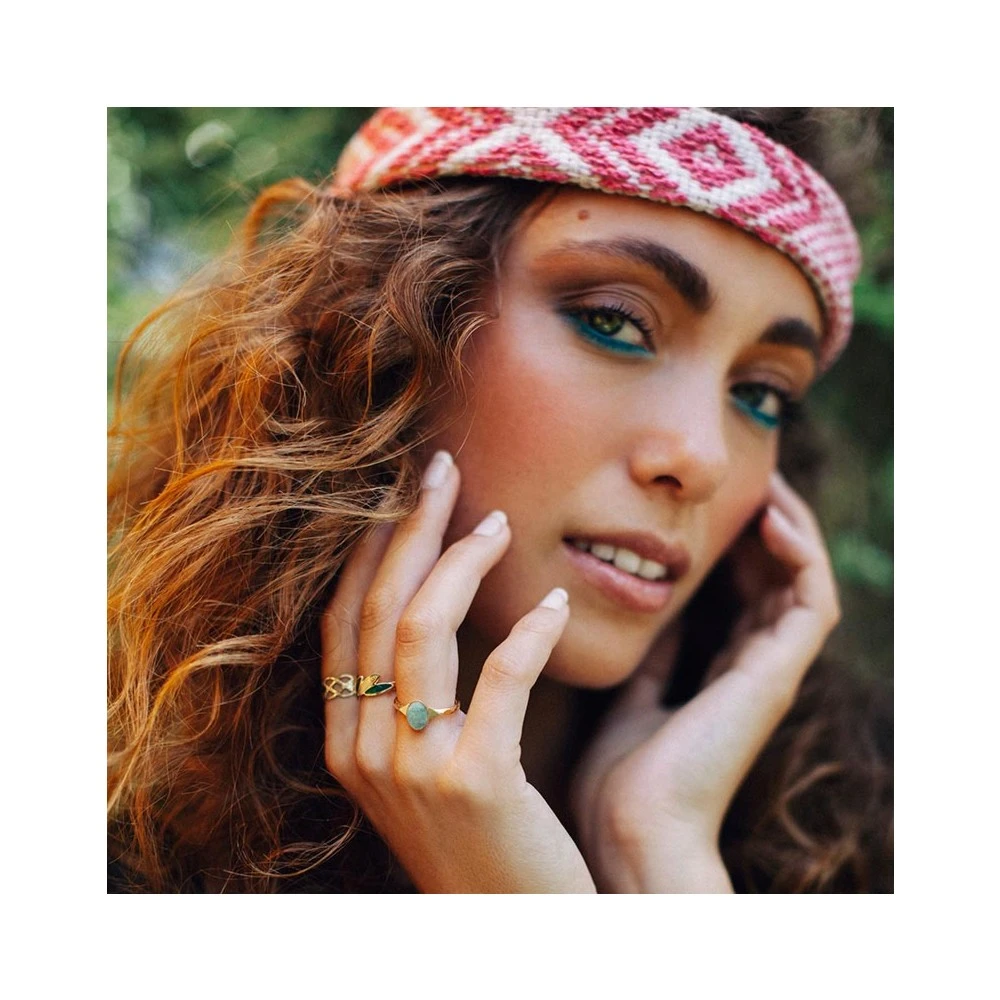 Cette bague cabochon dorée de la collection Inca, signée Laëti Trëma, est composée d’une pierre verte semi-précieuse en malachite.