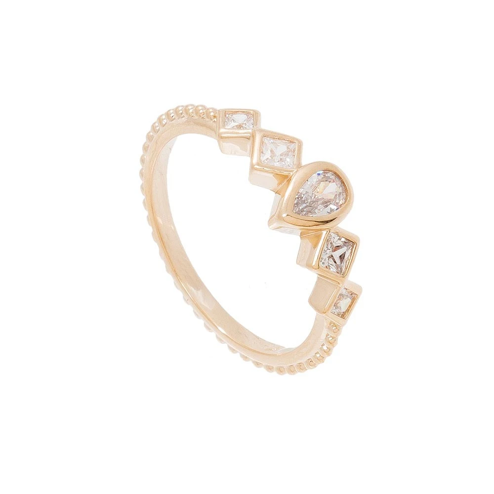 Bague plaqué or 3 microns, signée By Jollia, composée de cristaux carrés et en forme de goutte.