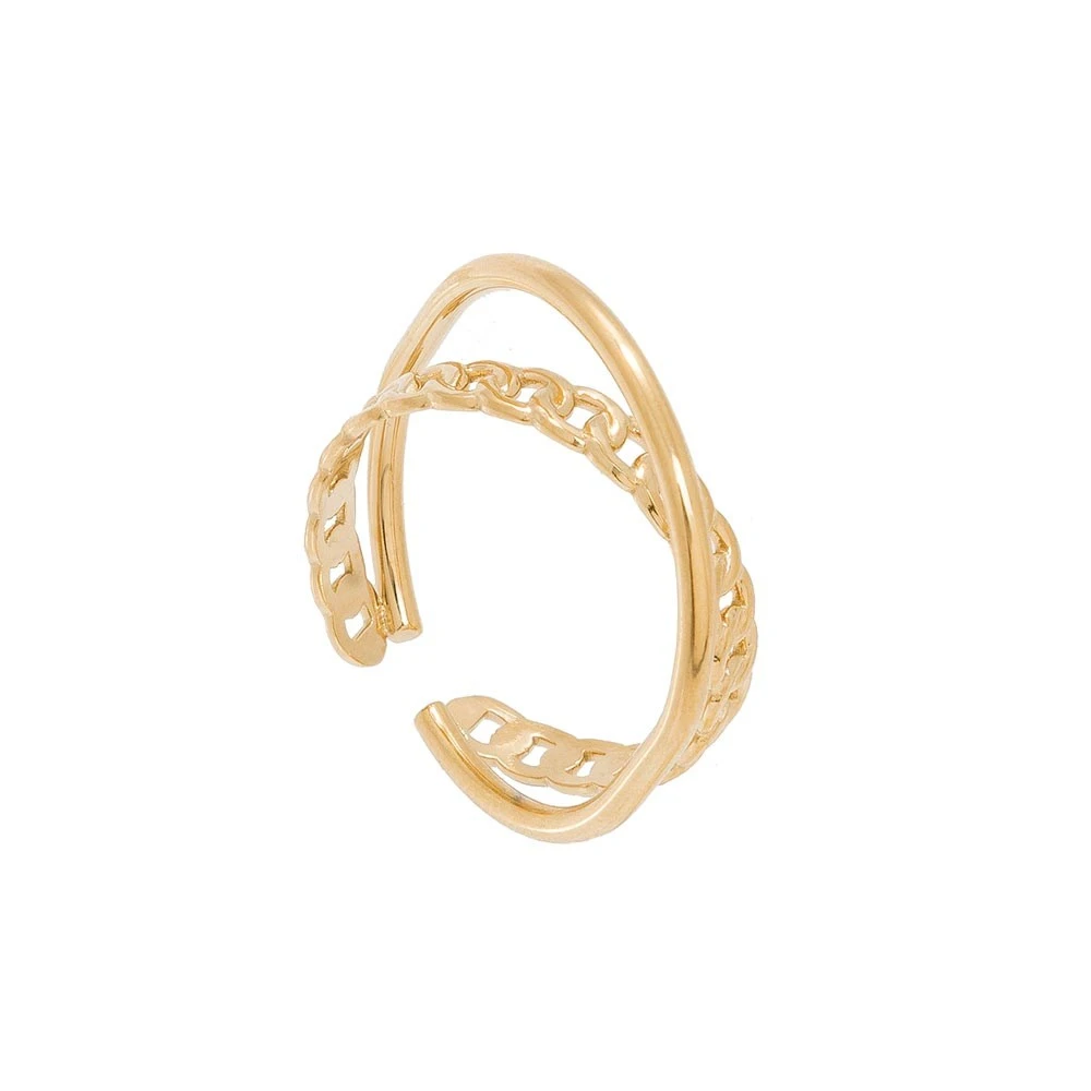 Bague qui détient un anneau lisse qui vient par dessus l’anneau maillon. Cette bague est en acier