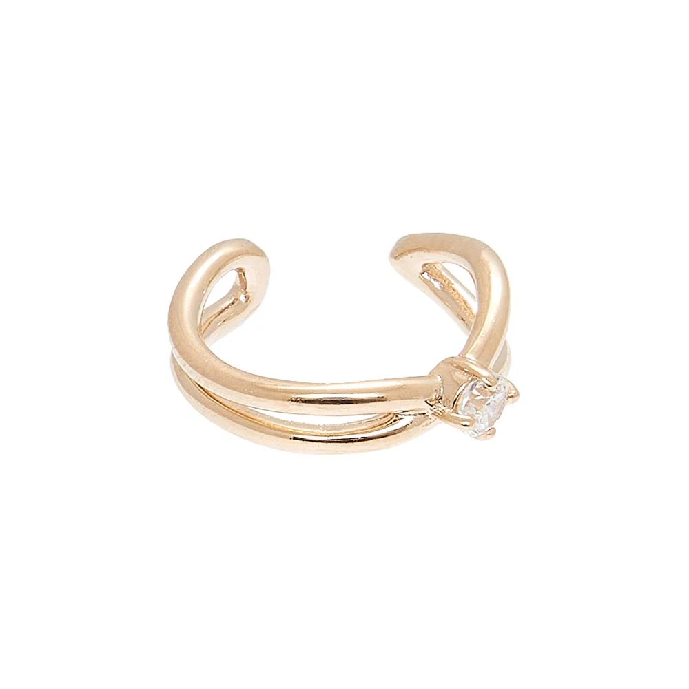 Cette bague d’oreille est signée By Jollia en plaqué or est ornée de doubles anneaux et d’un zircon qui viennent tomber sur le contour de l’oreille.