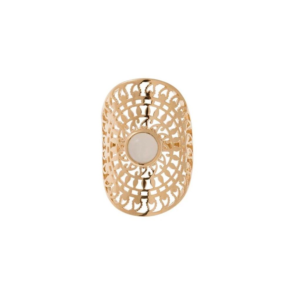 Cette bague déesse by Jollia est composée d’une rosace ajourée avec une pierre de lune en son centre.