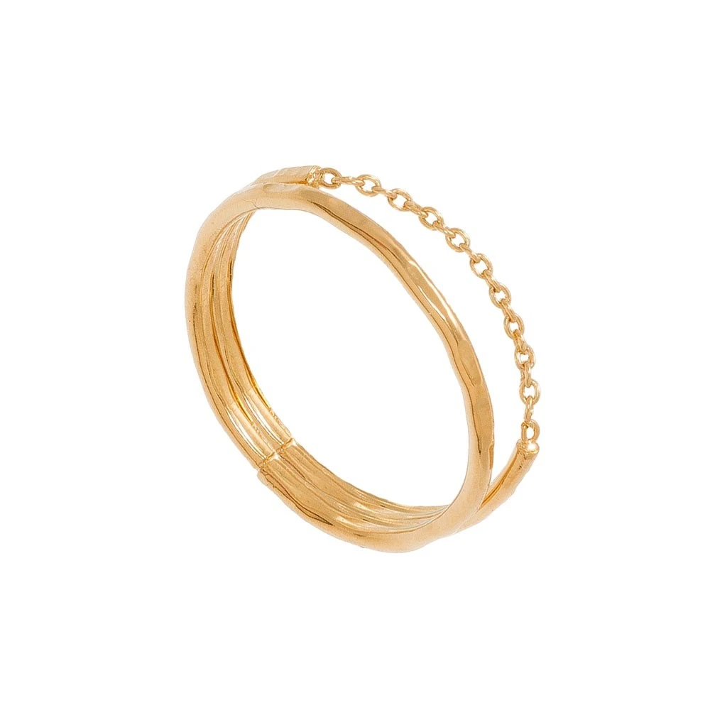 Bague double martelé et chaine est en plaqué or et est signée BDM Studio.