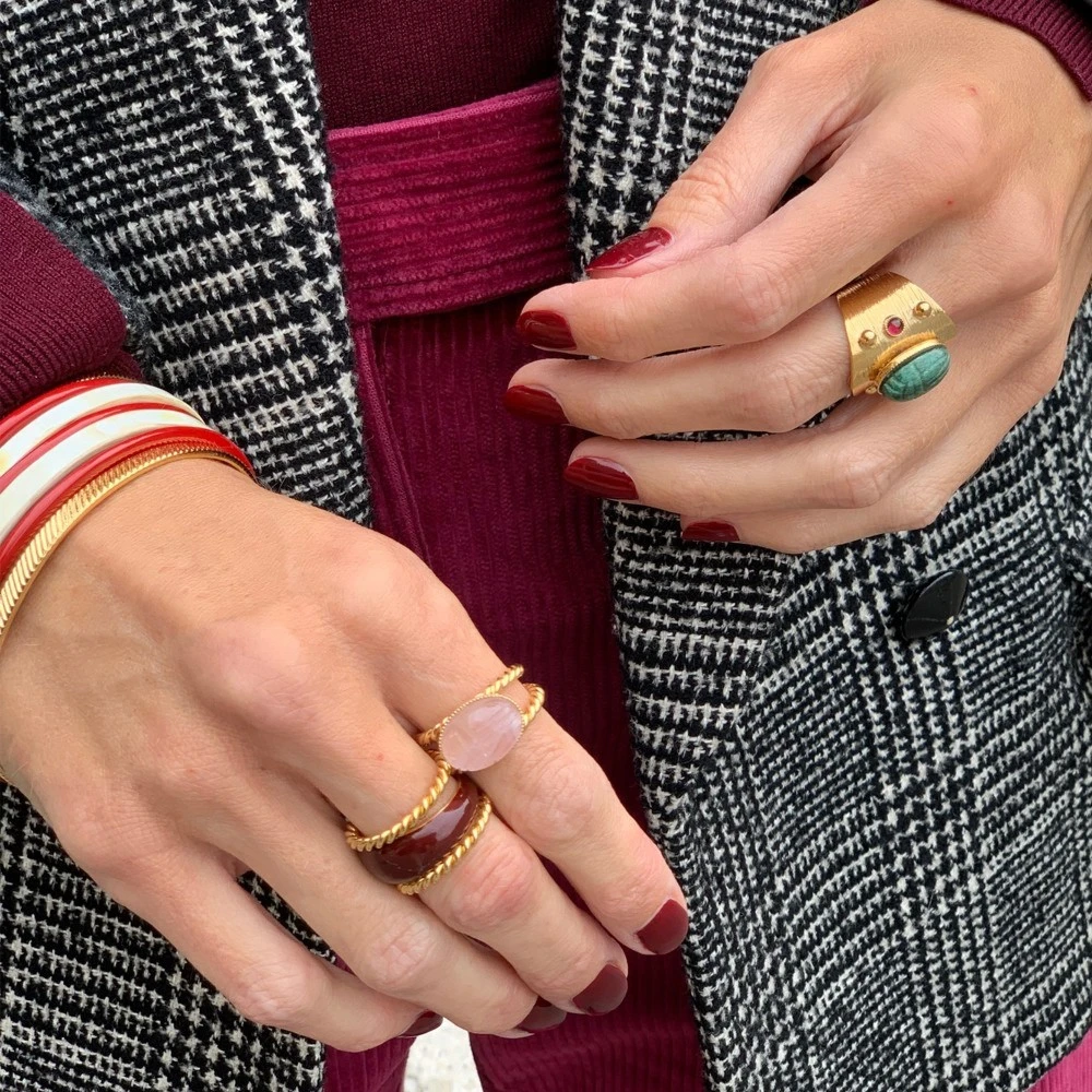 Bague double torsade émail bordeaux signée Dear Charlotte.