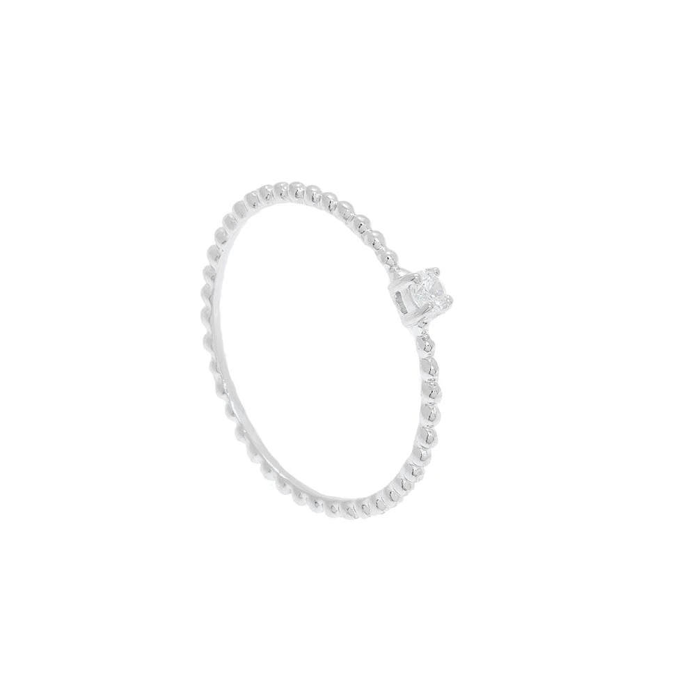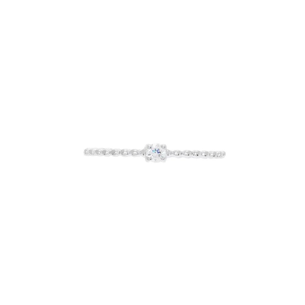Bague fine en argent 925, signée By Jollia, composée d’un anneau travaillé et d’un zircon, tel un solitaire.