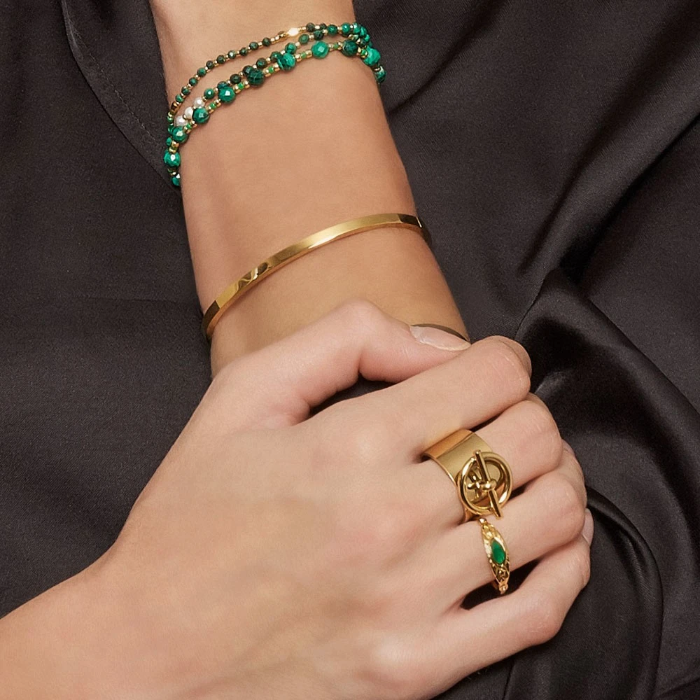Bague large composée d’un anneau et d’une barre au milieu de celui ci, signée Siloé.