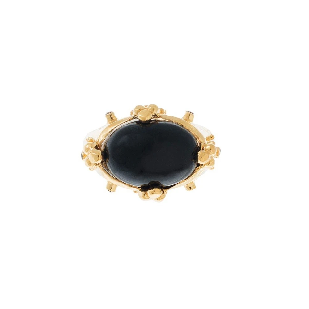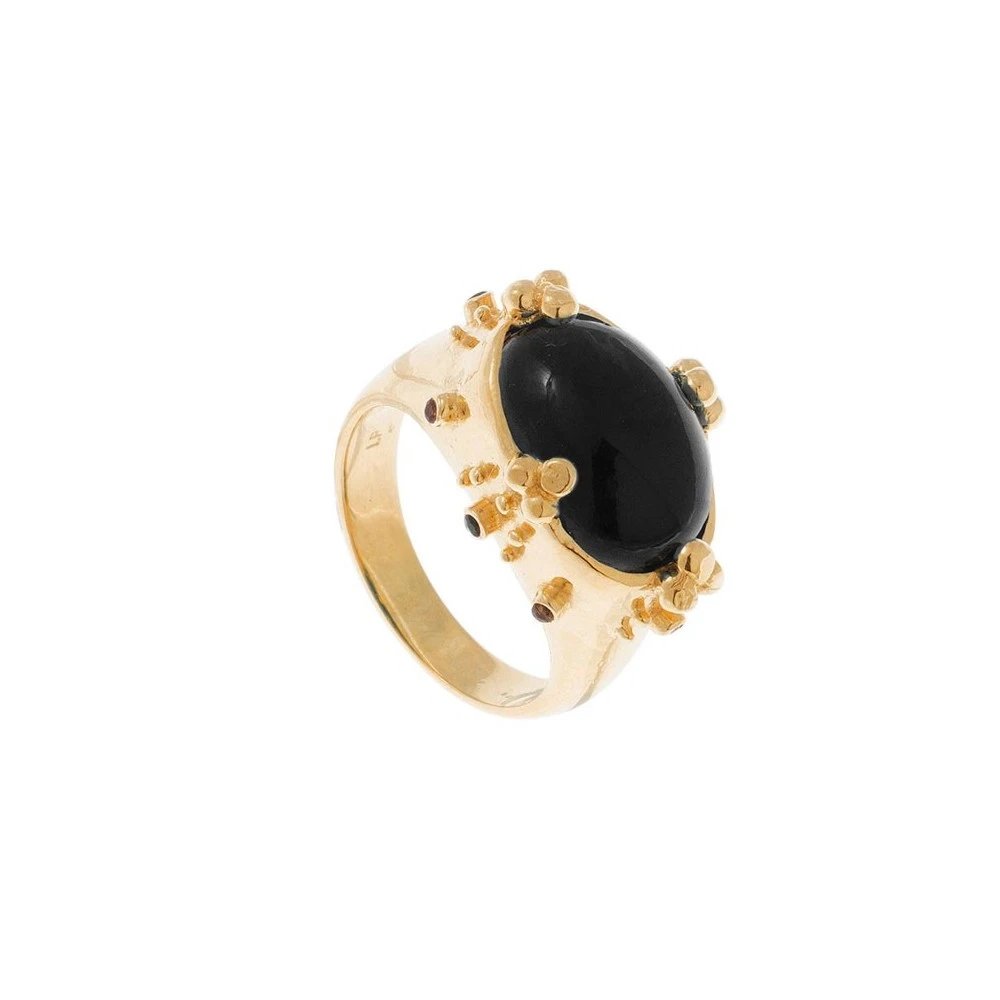Cette bague 18 carats 3 microns de la collection Alba est signée Leticia Ponti. Elle est composée d’une pierre semi-précieuse en onyx, ainsi que de plusieurs petites pierres en Tourmaline.