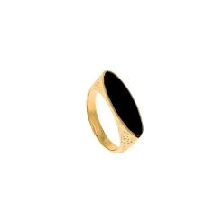 Bague ovale signée By Jollia, plaquée or et composée d’une pierre plate agate noire.