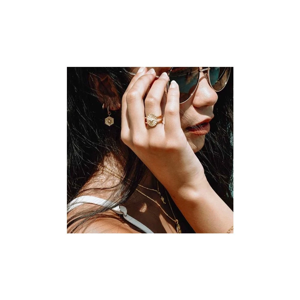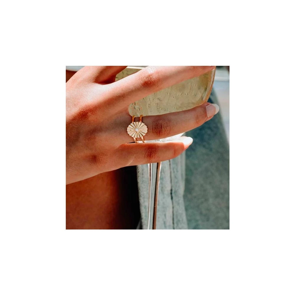 Bague ovale étoile avec un zircon vert en son centre signée Azuni.