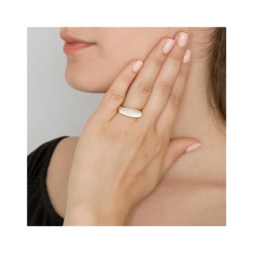 Bague ovale signée By Jollia, plaquée or et composée d’une pierre plate nacre.
