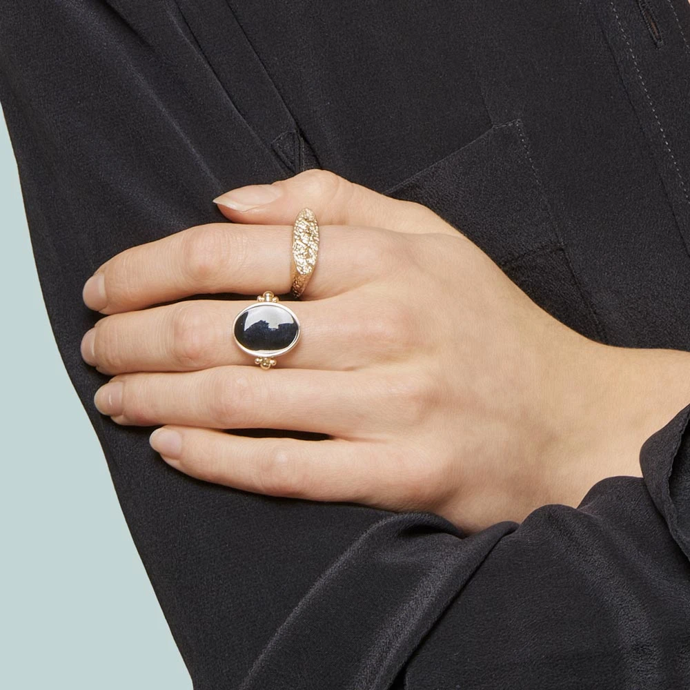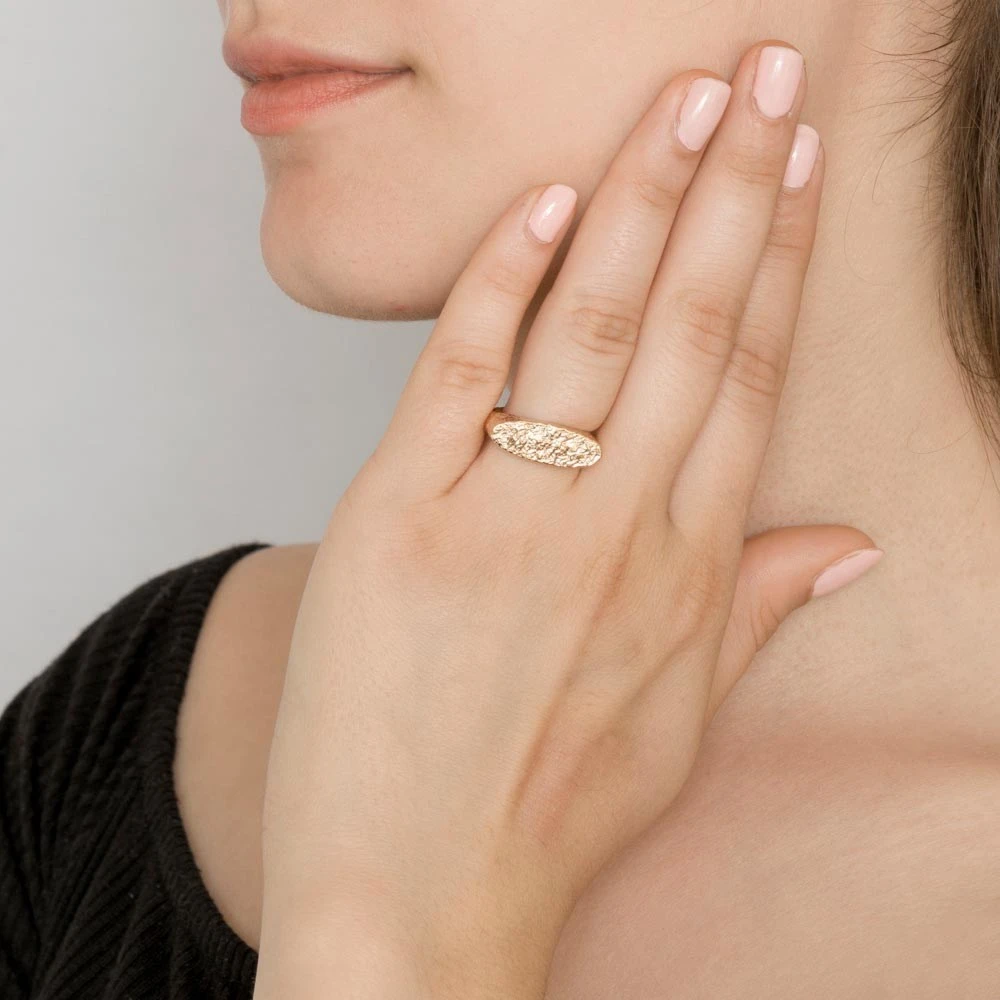 Bague ovale plaquée or et plate sur le dessus, signée By Jollia.