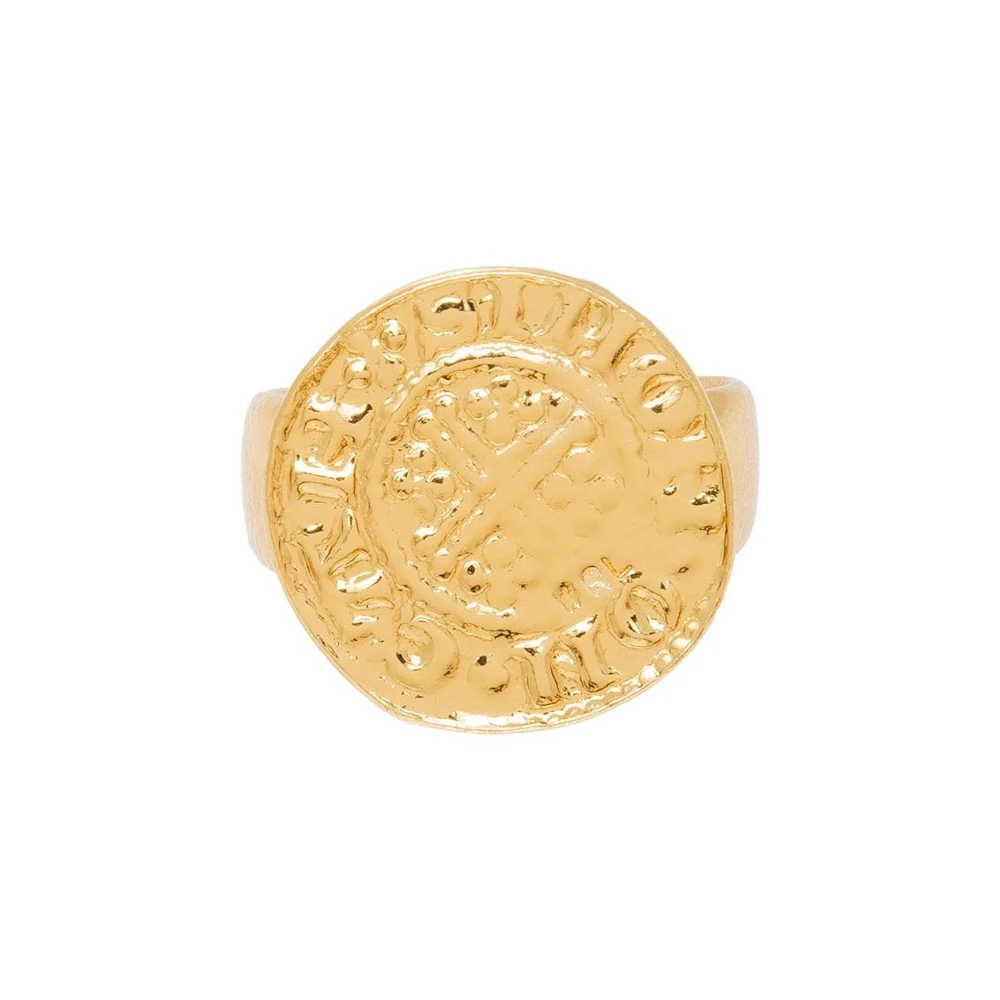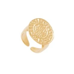 Bague dorée médaille gravée en laiton trempée dans un bain d’or signée By Garance.