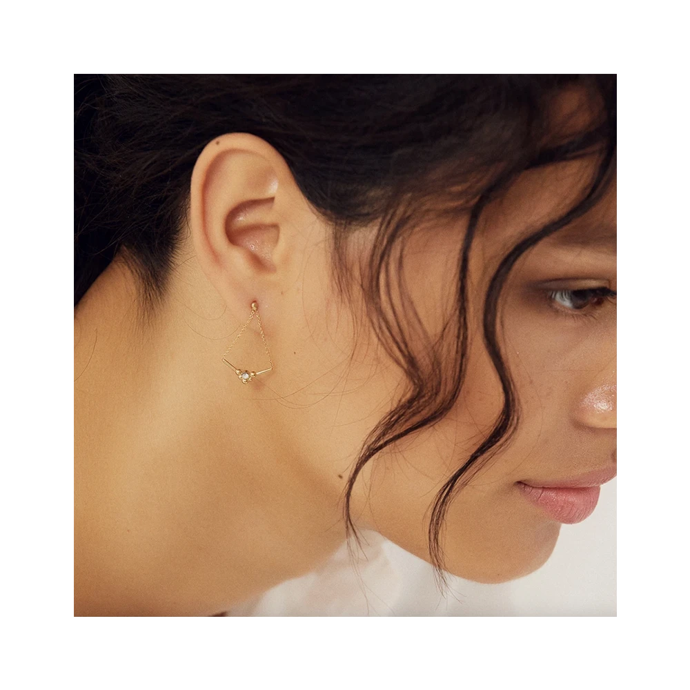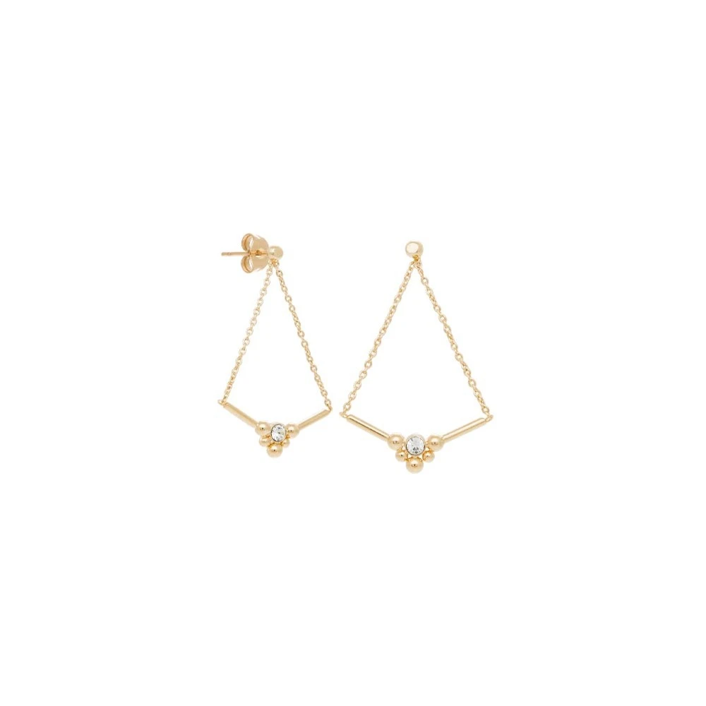 Ces boucles chaines et arc dorées à l’or fin sont composées d’un petit cristal, et sont signées BDM Studio.