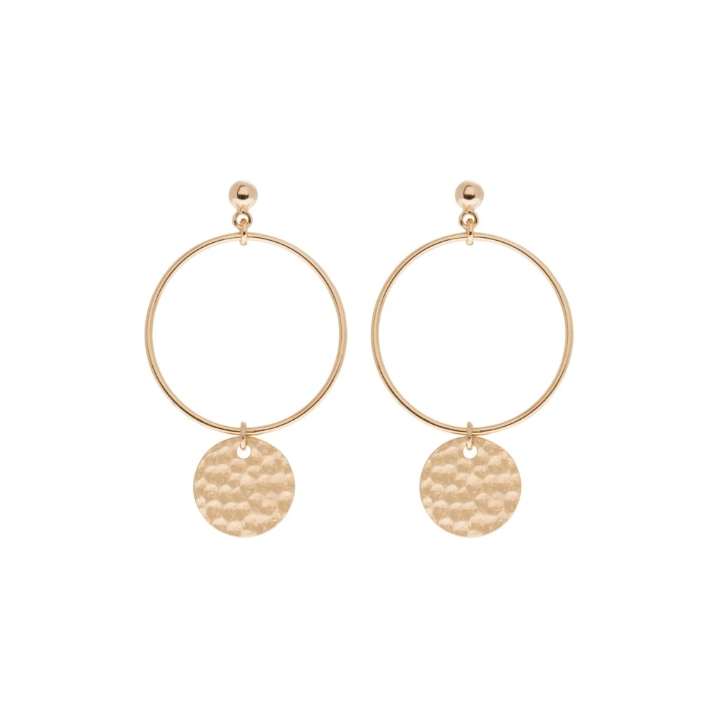 Boucles D’oreilles Cercle Martelé Et Pierre De Lune (plaqué Or)