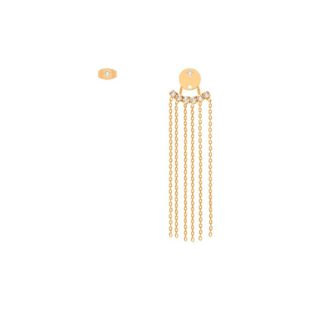 Ces boucles d’oreilles de la collection Serena de Caroline Najman sont unique en son genre : elles sont asymétrique. Retrouvez ainsi l’une en dessous d’oreille unique (boucles d’oreilles balancier) et d’une puce en laiton trempé dans un bain d’or 2 microns sertis de cristaux Swarovski et de 5 fines chaînes délicatement suspendues aux cristaux. L’autre est simplement une puce d’oreille en cristal Swarovski blanc.