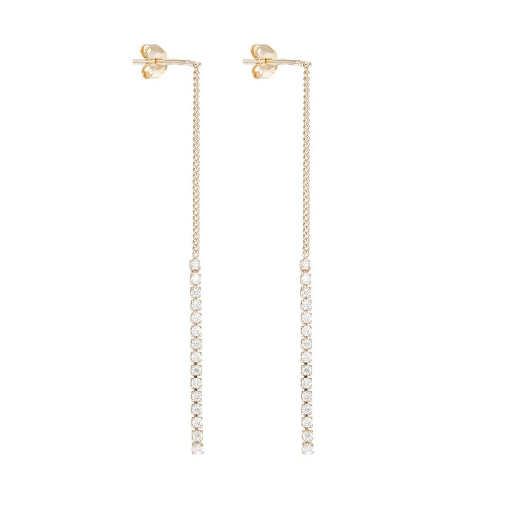 Boucles d’oreilles longues ornées de cristaux et chaîne en plaqué or signées By Jollia.