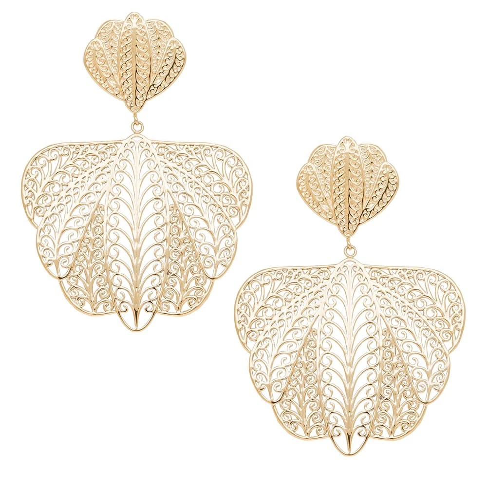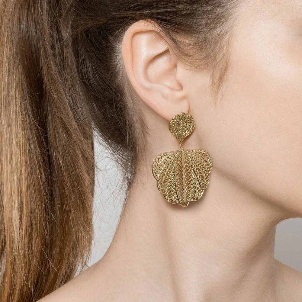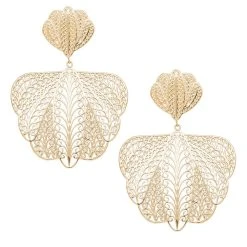 Boucles d’oreilles longues en forme de papillon ajouré en acier inoxydable doré signées Siloé.