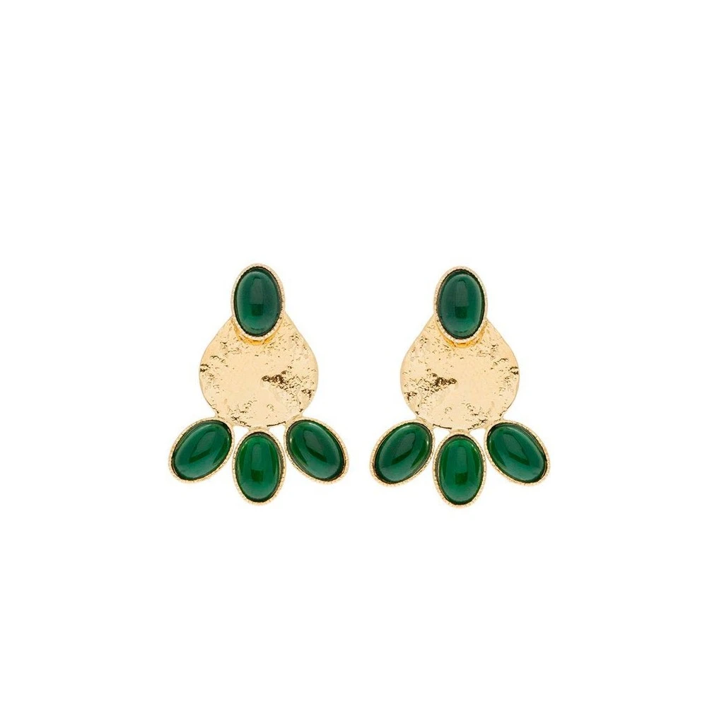 Boucles D’oreilles Cercle Martelé Et Pierre De Lune (plaqué Or)