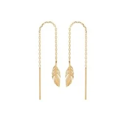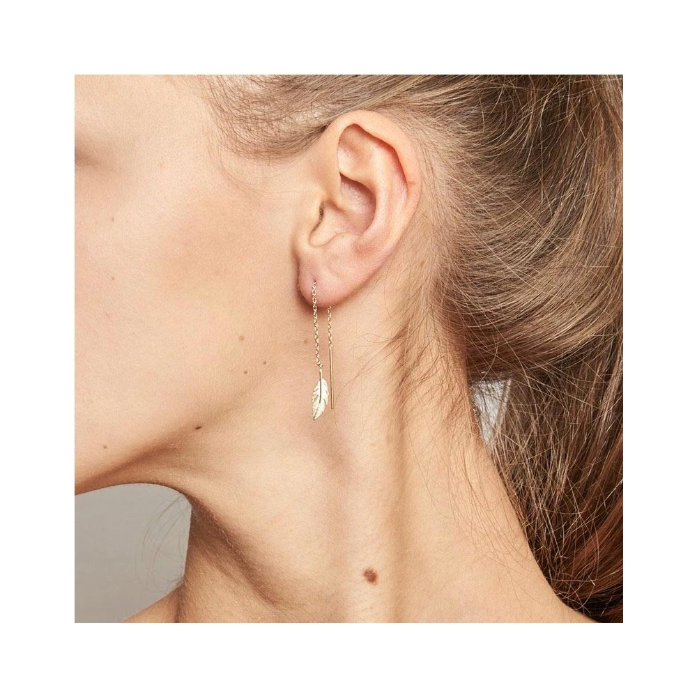 Ces boucles d’oreilles longues sont signées de notre marque By Jollia. Leur chaîne fine est ornée d’une fine plume gravée. La boucle s’enfile grâce à sa tige puis se glisse doucement dans l’oreille pour un effet avant – arrière de lobe.