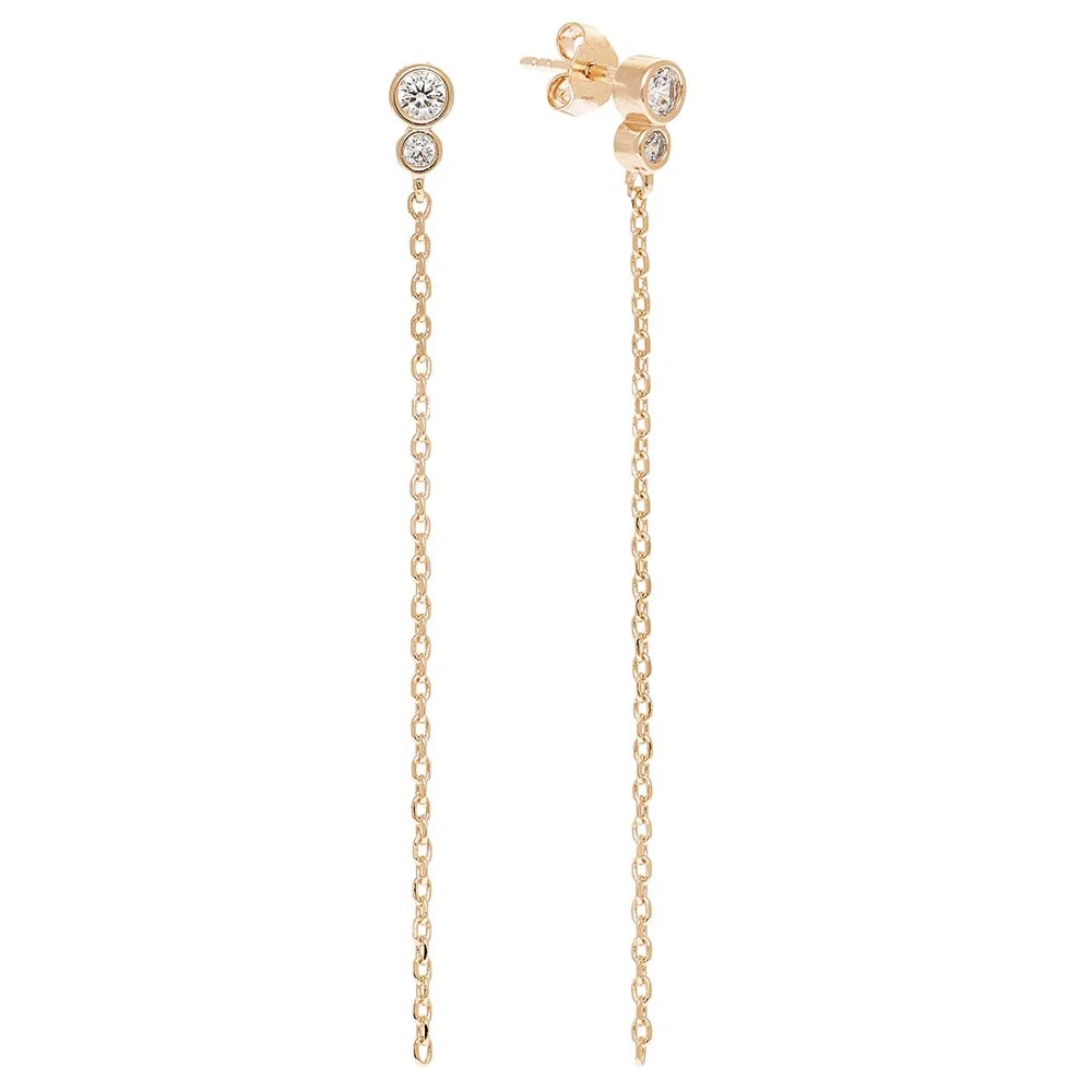 Ces boucles fines pendantes à zircons dorés sont en plaqué or et signées By Jollia.