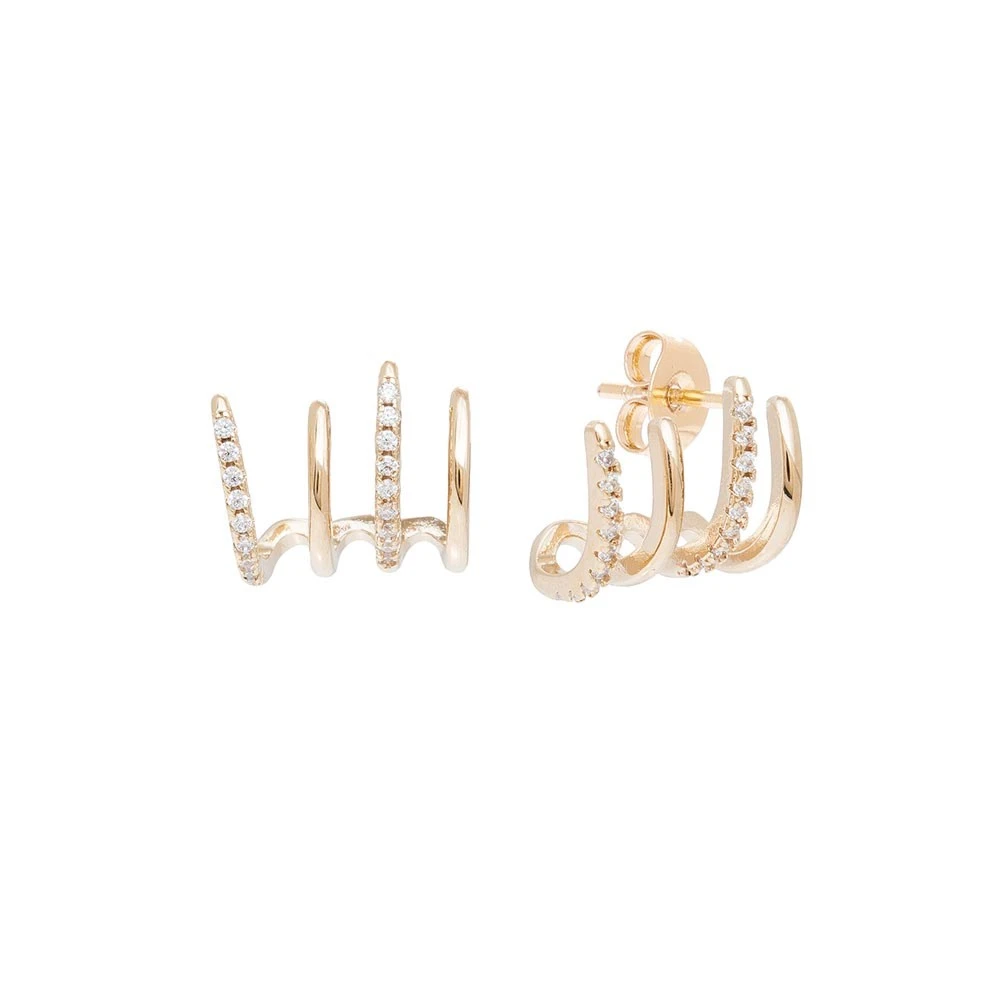 Boucles d’oreilles multi anneaux lisses et zircons en plaqué or signées By Jollia.