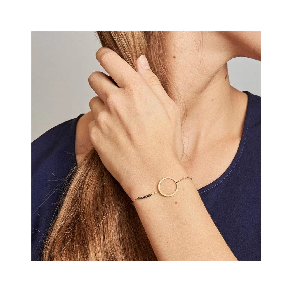 Ce bracelet s’adapte à toutes les morphologies de poignet. Il mesure 18 cm en longueur déployée (hors chaîne de réglage de 3 cm, bijou-logo de la marque et fermoir mousqueton). Ce bracelet a été conçu en acier chirurgical trempé dans un bain d’or.