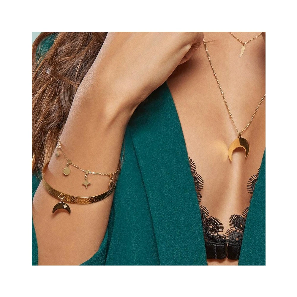 Bracelet en acier chirurgical doré à l’or fin signé Ikita. Il se compose de pastilles et d’étoiles.