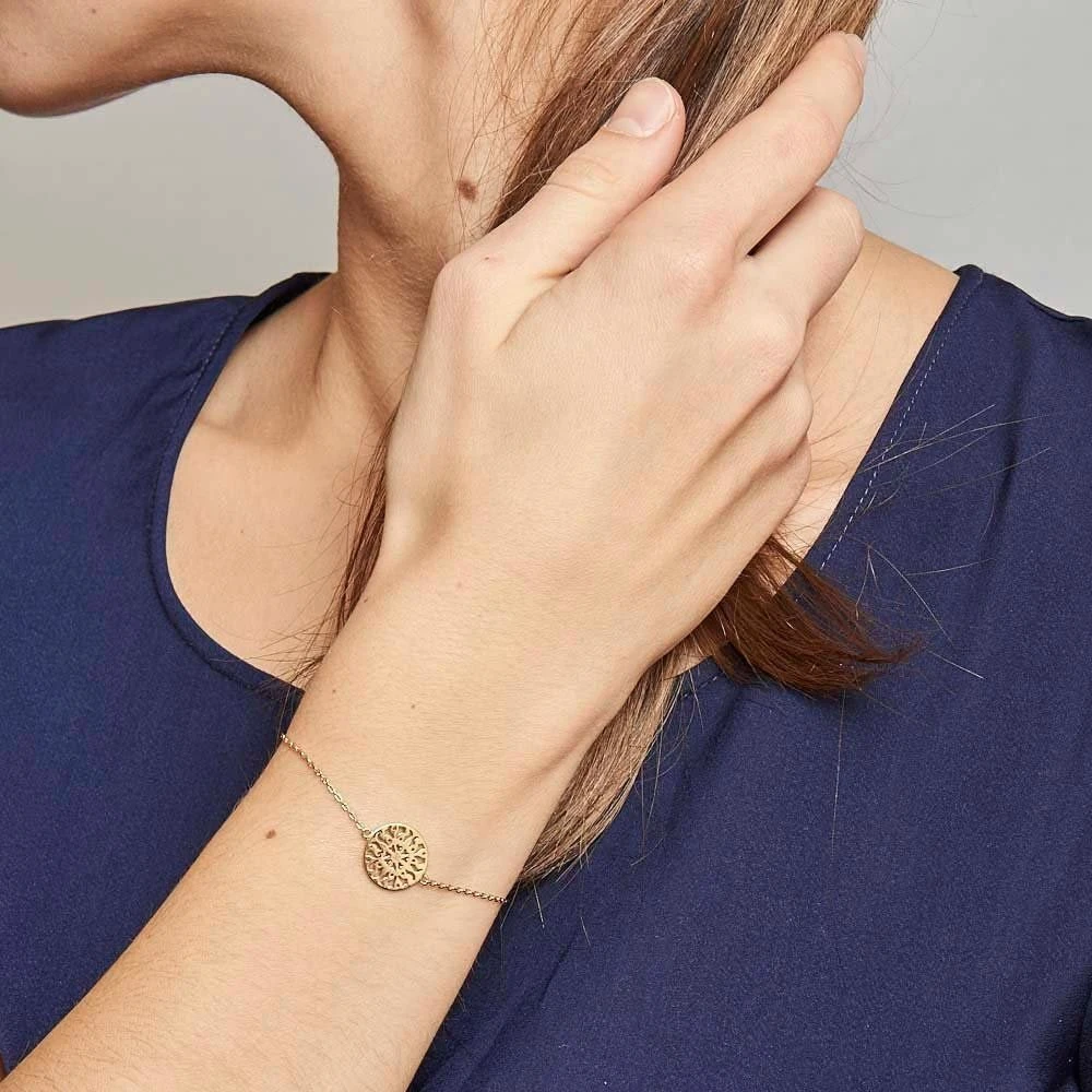 Le bracelet Déesse est signé By Jollia. Sa fine chaîne est orné d’une médaille ronde ajourée en motifs maya. Un bijou finement ouvragé pour votre plus grand plaisir.