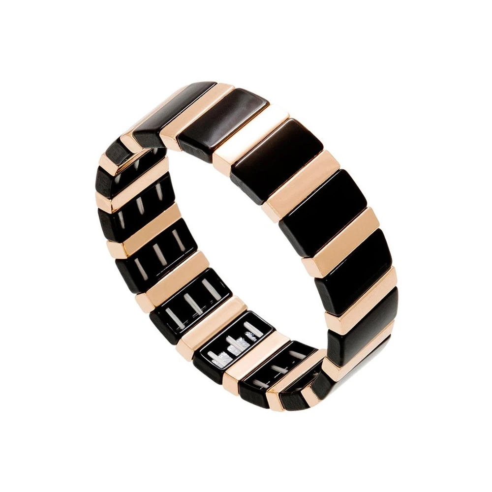 Bracelet élastique noir et doré en acier chirurgical trempé dans un bain doré, signé Siloé Paris.