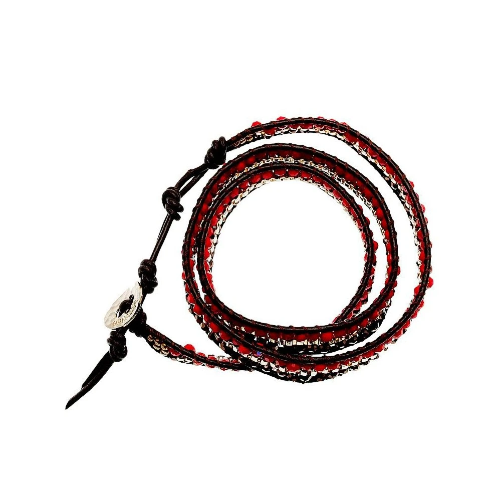 Ce bracelet porte le rouge au coeur, couleur de la passion, couleur de l’amour. Ses tons chauds et lumineux, son camaïeux de grenats et d’ocres en font un bijou fort et puissant. Porté à votre poignet, façon bracelet trois tours ou dans vos cheveux en bandeau, il réchauffera instantanément votre tenue.
