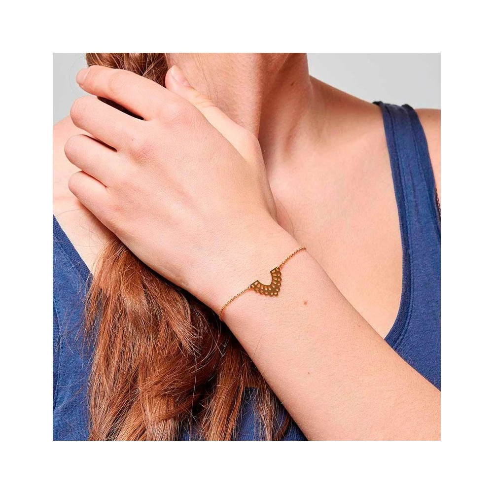 Ce bracelet Gaia inspiré du style oriental Les Dissonances est composé d’un ravissant arabesque dorée à l’or fin et d’une chaine plaqué or. Une belle pièce pour une femme en quête de distinction.