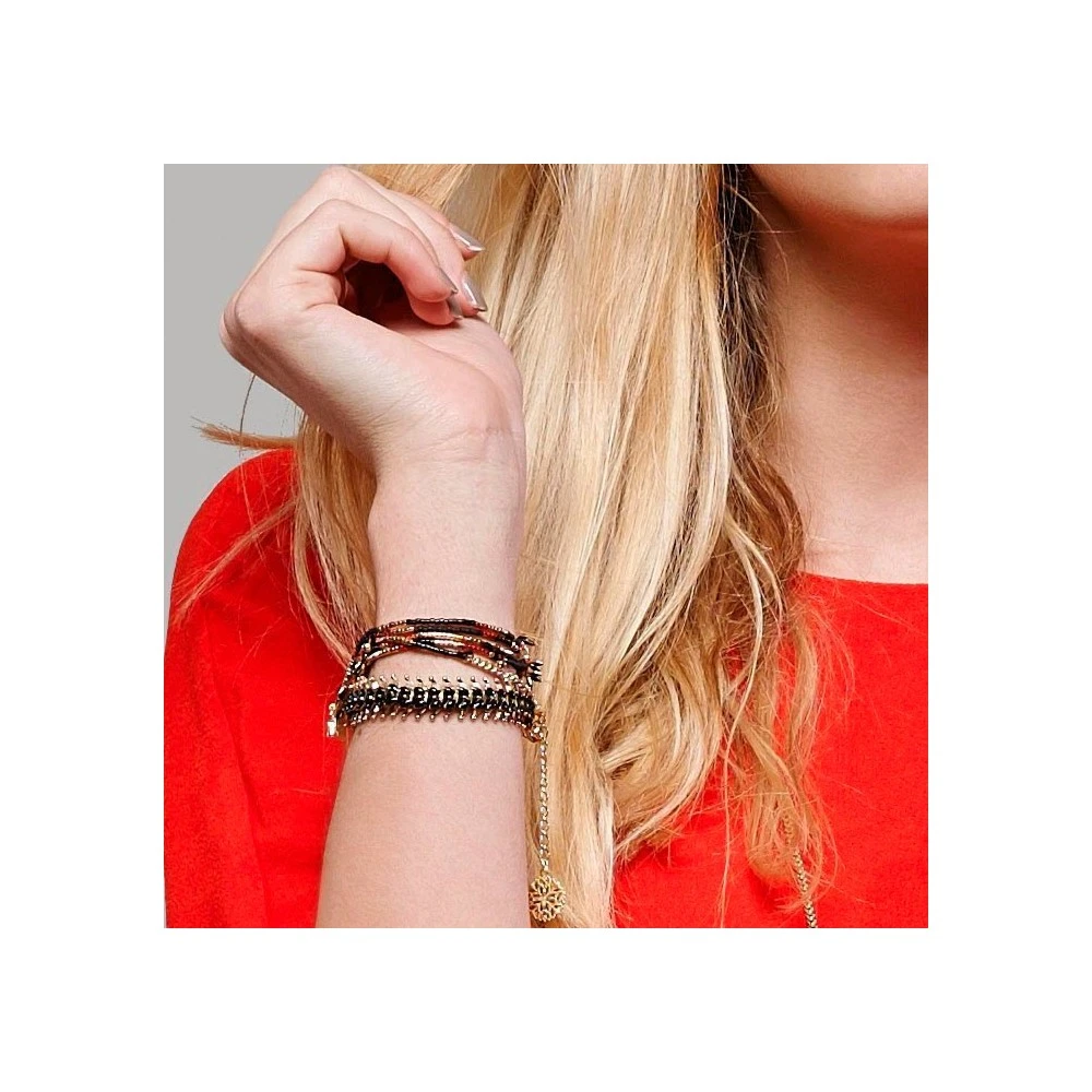Le bracelet India est en laiton doré à l’or fin 24 carats, tissé et émaillé bordeaux, il saura réveiller un look hivernal pour un style ethnique chic! Réglable, il conviendra à tous les poignets.