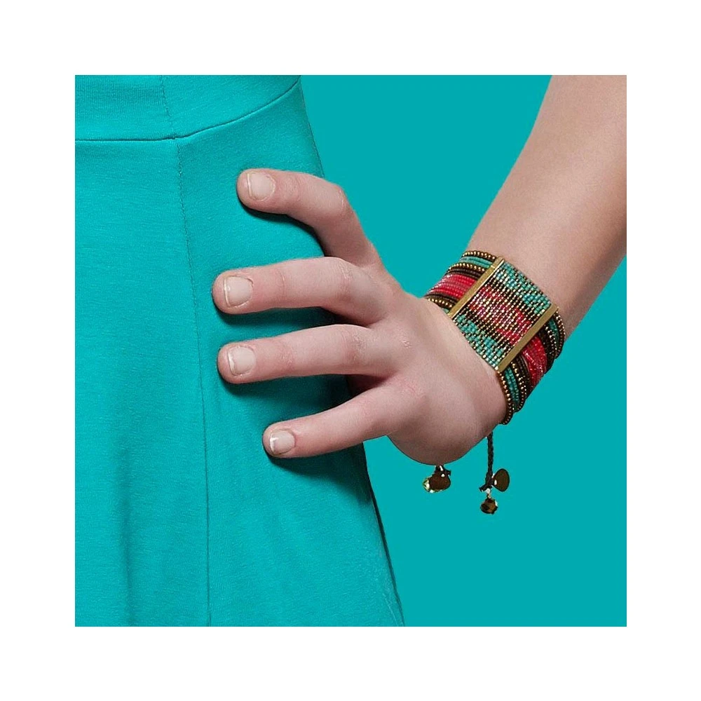 Ce bracelet est réglable et s’adapte à tous les poignets ! Les cordons de réglage gris sont ornés de jolies pierres de couleur.
