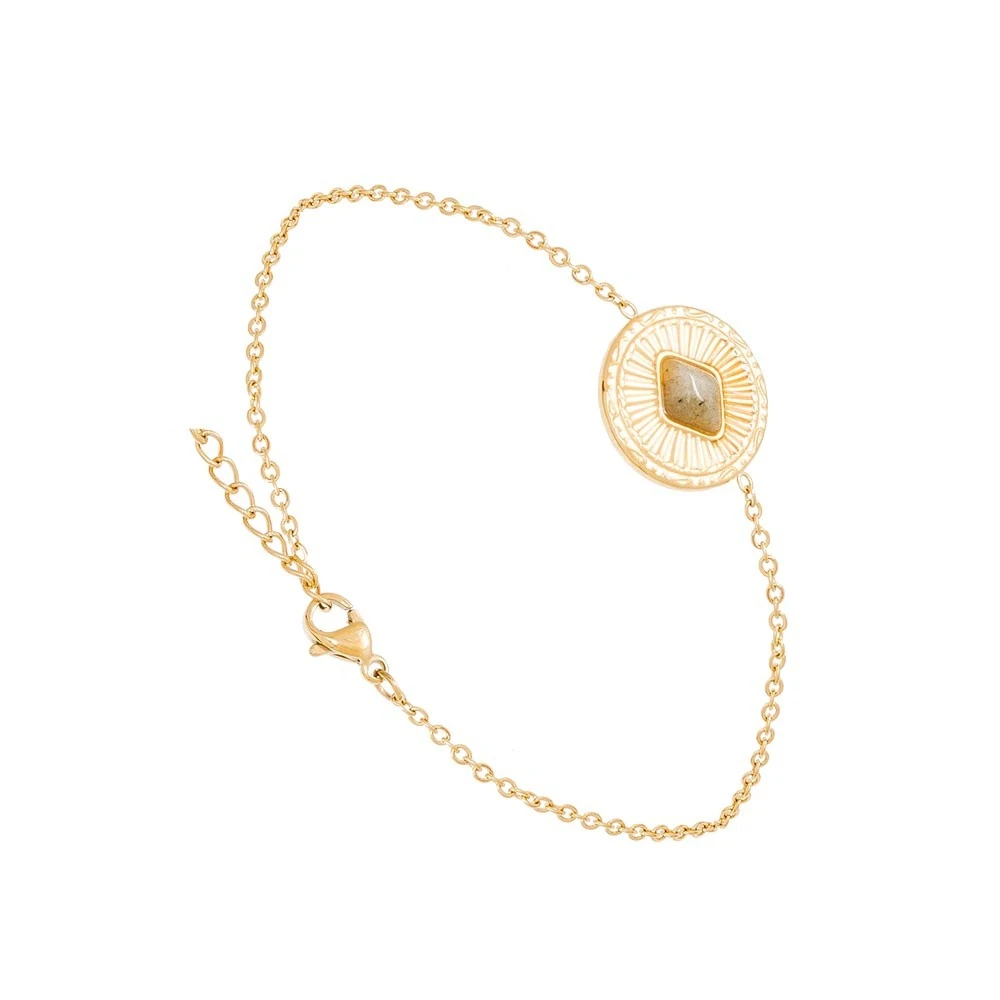 Bracelet doté d’une médaille pierre losange en labradorite.