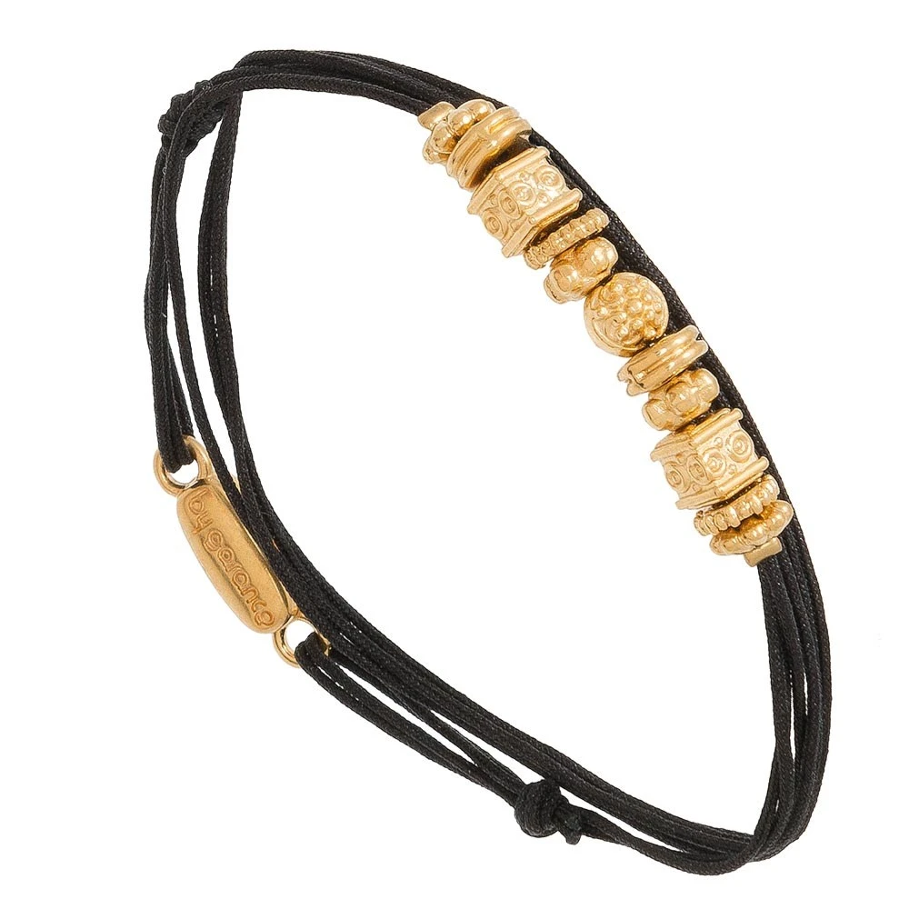 Bracelet multi-tours noir composé de perles dorées orientales. Ce bracelet est en laiton trempé dans un bain d’or signé By Garance.