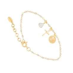 Bracelet perles fines labradorite et charms en laiton doré à l’or fin 18 carats et 1 micron signé Une A Une.