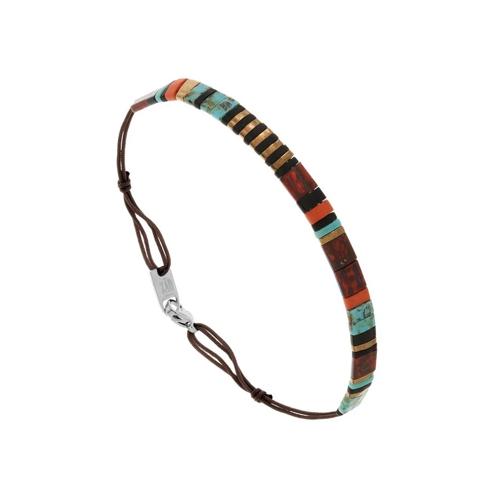 Bracelet ajustable grâce à ses cordons coulissants. Se ferme grâce à un fermoir.