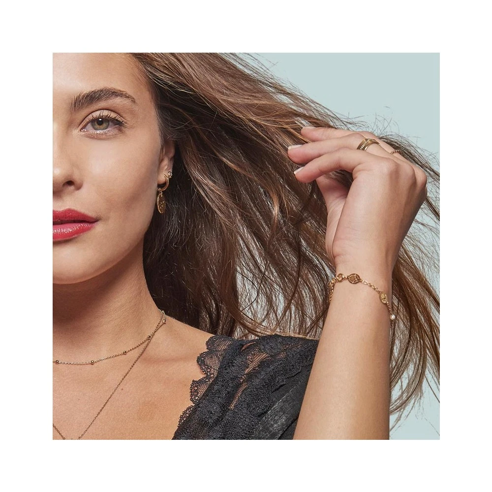 Ce bracelet rosaces et perles plaqué or signé By Jollia est composé de deux perles de culture et de petits détails ajourés.