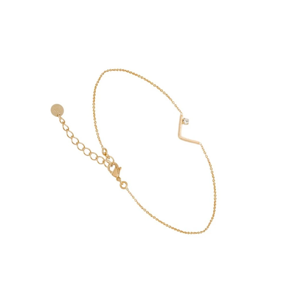 Ce bracelet triangle en plaqué or est composé d’un strass Swarovski et signé BDM Studio.
