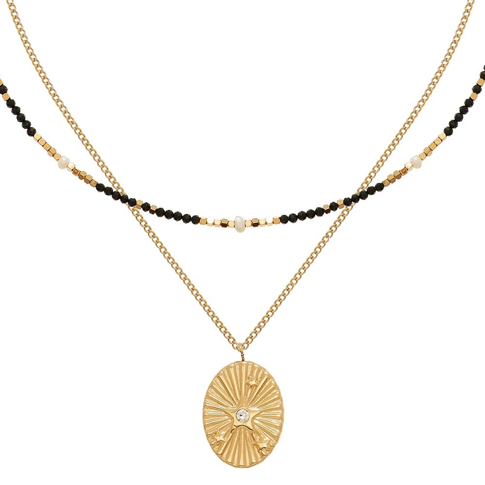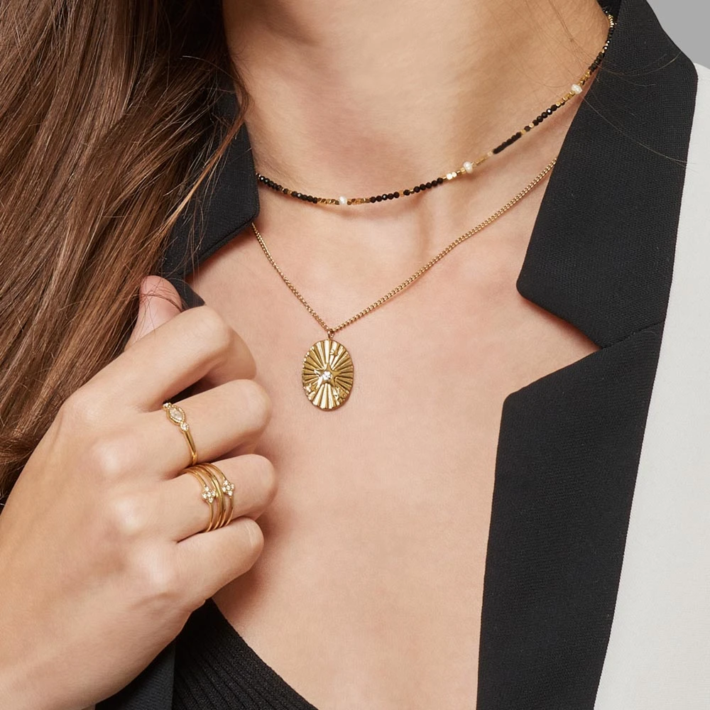 Le premier collier est une médaille orné d’une étoile et de zircons transparents.