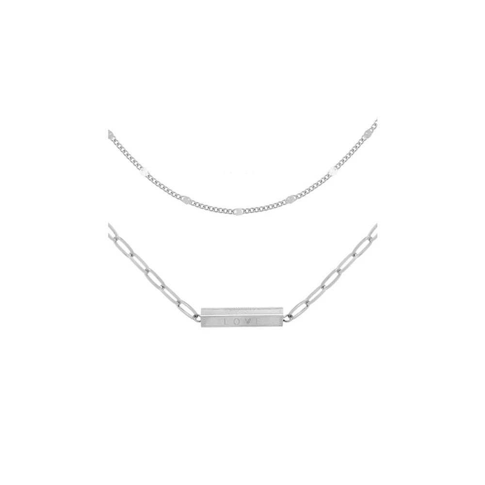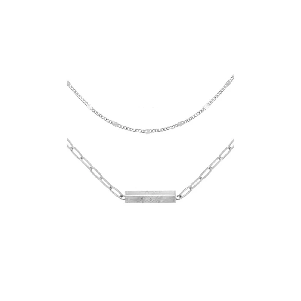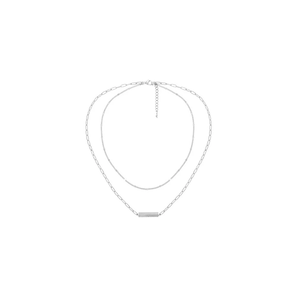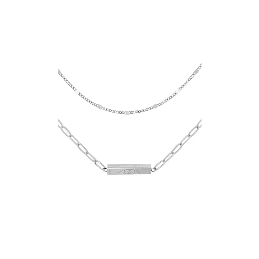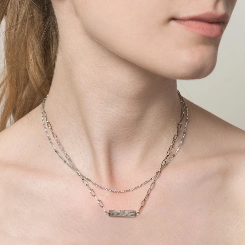 Ce collier 2 rangs en acier chirurgical est signé Siloé Paris. Il est composé de 2 chaînes : l’une avec de fins maillons et l’autre en mailons agrémentés d’un talisman.