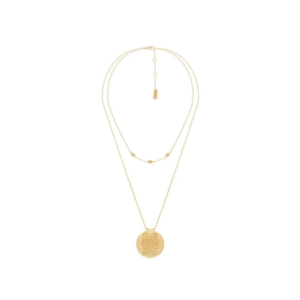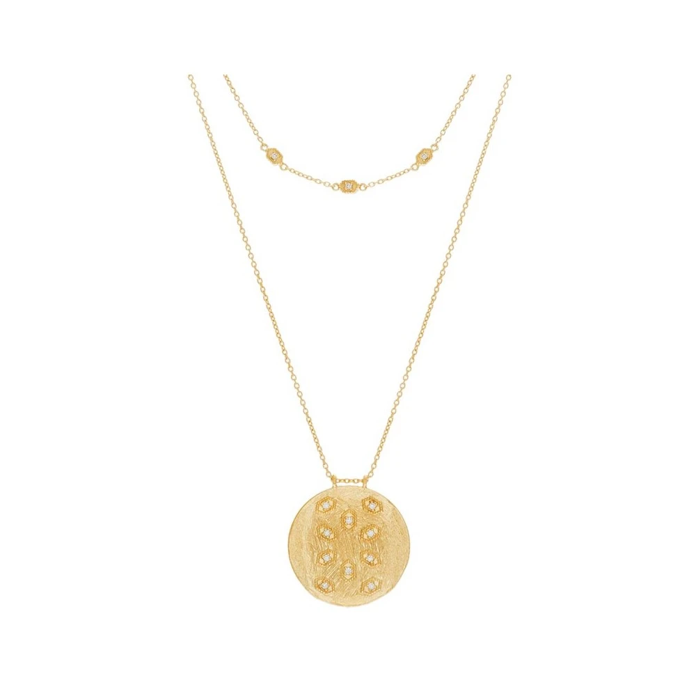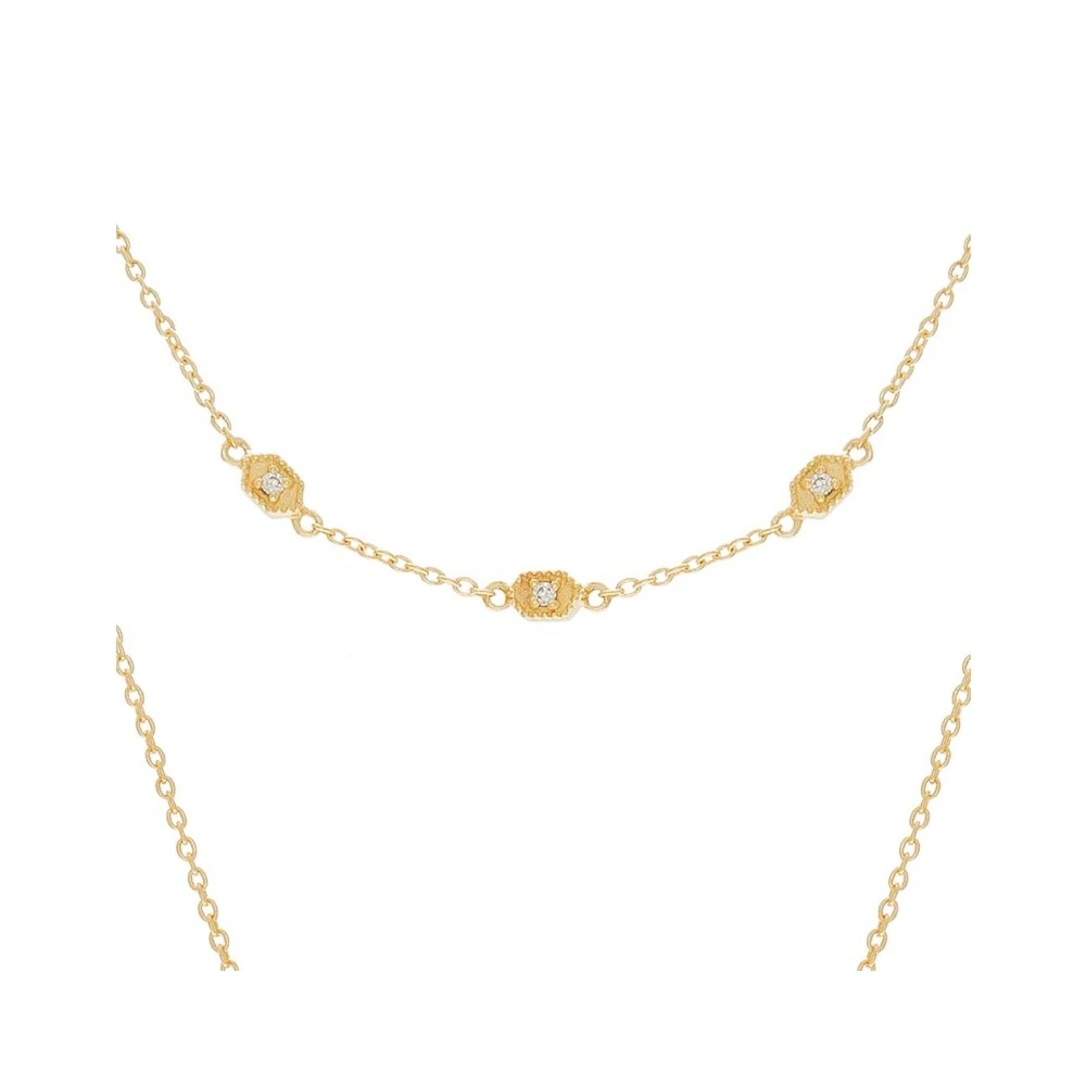Ce collier 2 rangs est fabriqué à la main en laiton doré à l’or fin 18K et serti de zircons blanc et signé par Be Maad.