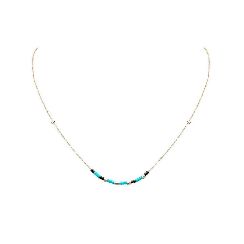 Ce collier est composé d’une fine chaine en plaqué or sur laquelle roulent de fines perles japonaises bleues. Ce bijou ultra fin fera son effet autour des cous les plus délicats. Très chic et très tendance il ira parfaitement avec vos tenues les plus simples.