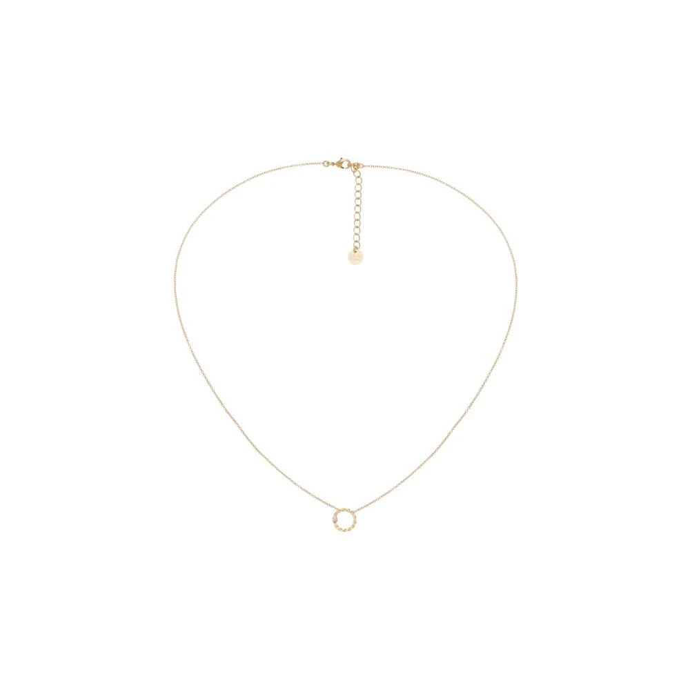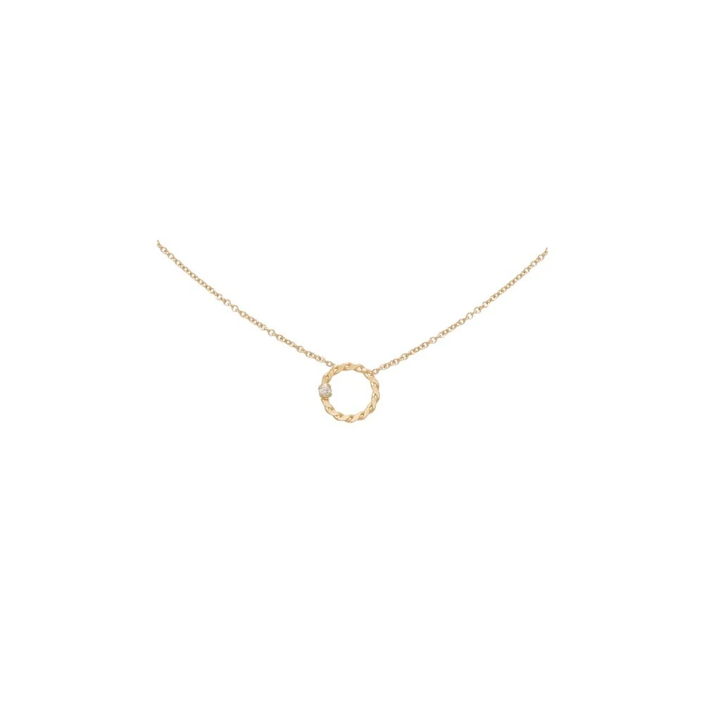 Ce collier doré à l’or fin, composé d’un cercle torsadé et d’un cristal blanc est signé BDM Studio.