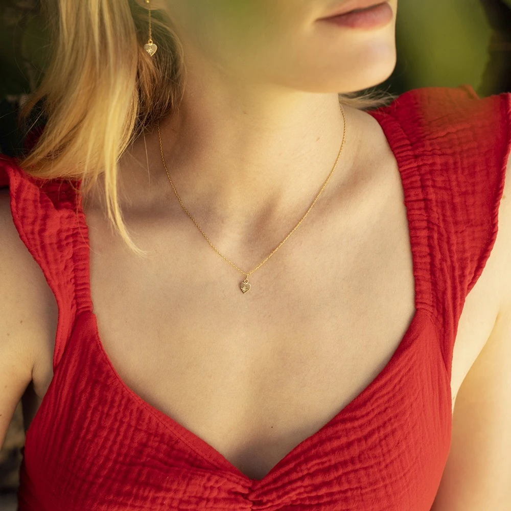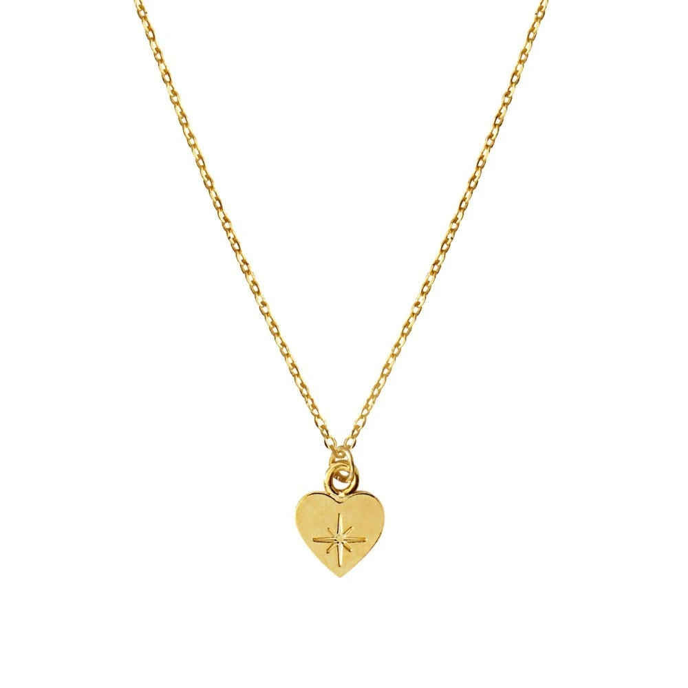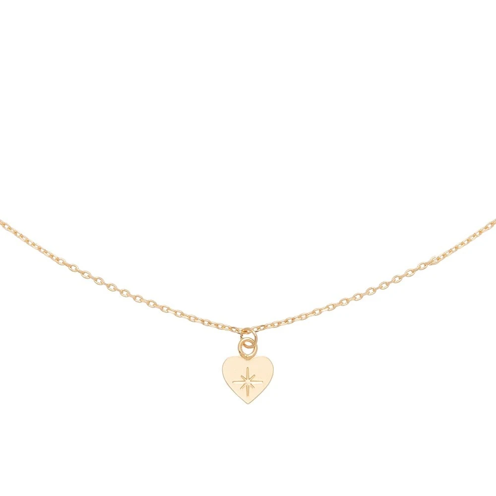 Collier doré à l’or fin 24K signé Les Dissonances composé d’une médaille coeur étoile filante.