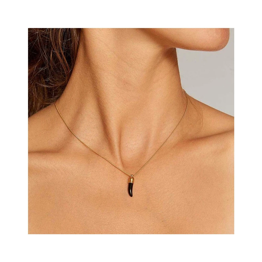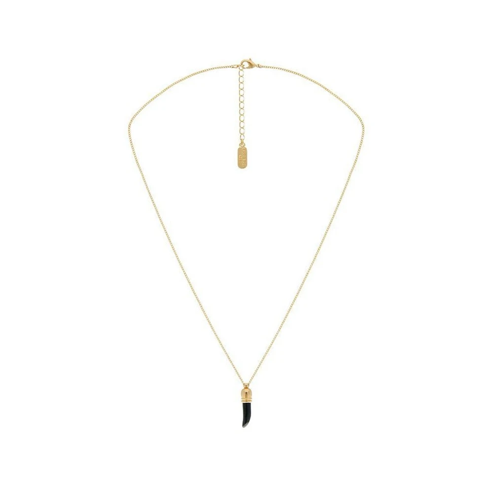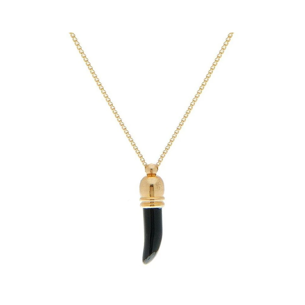 Collier en plaqué or 3 microns et 24 carats, signé Leticia Ponti, composé d’un pendentif corne, serti d’une pierre onyx.