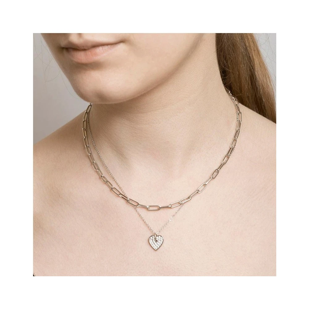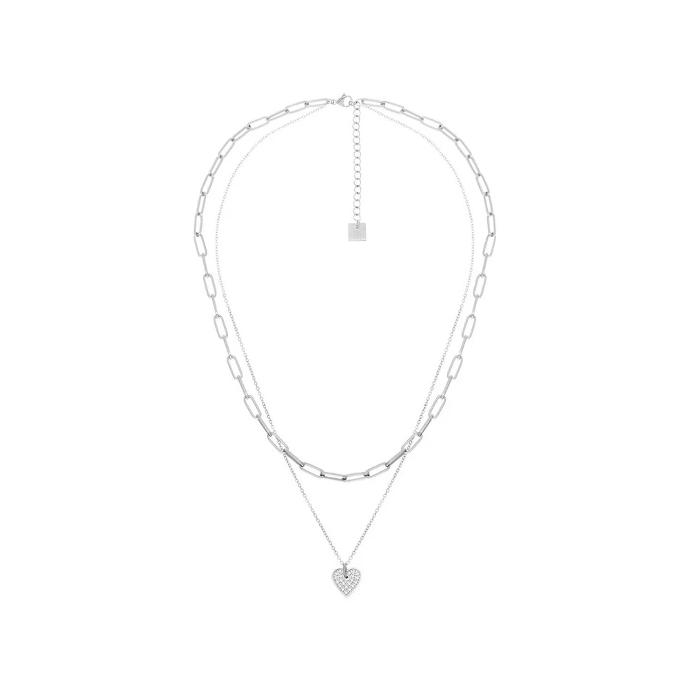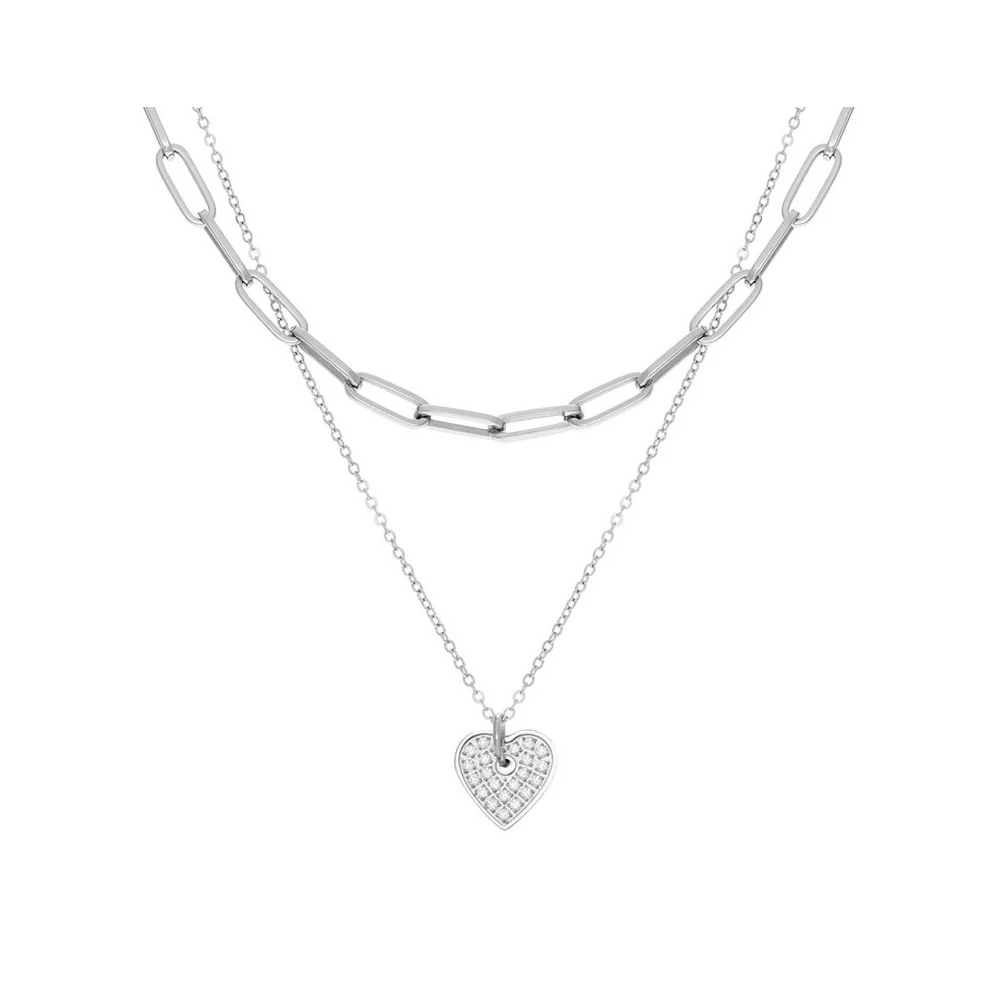 Ce collier deux rangs signé Zag Bijoux est composé d’un cœur serti de zircons suspendu par une chaine fine maille et doublé d’une chaîne grosse maille. Ce collier est trempé dans un bain d’or d’argent.