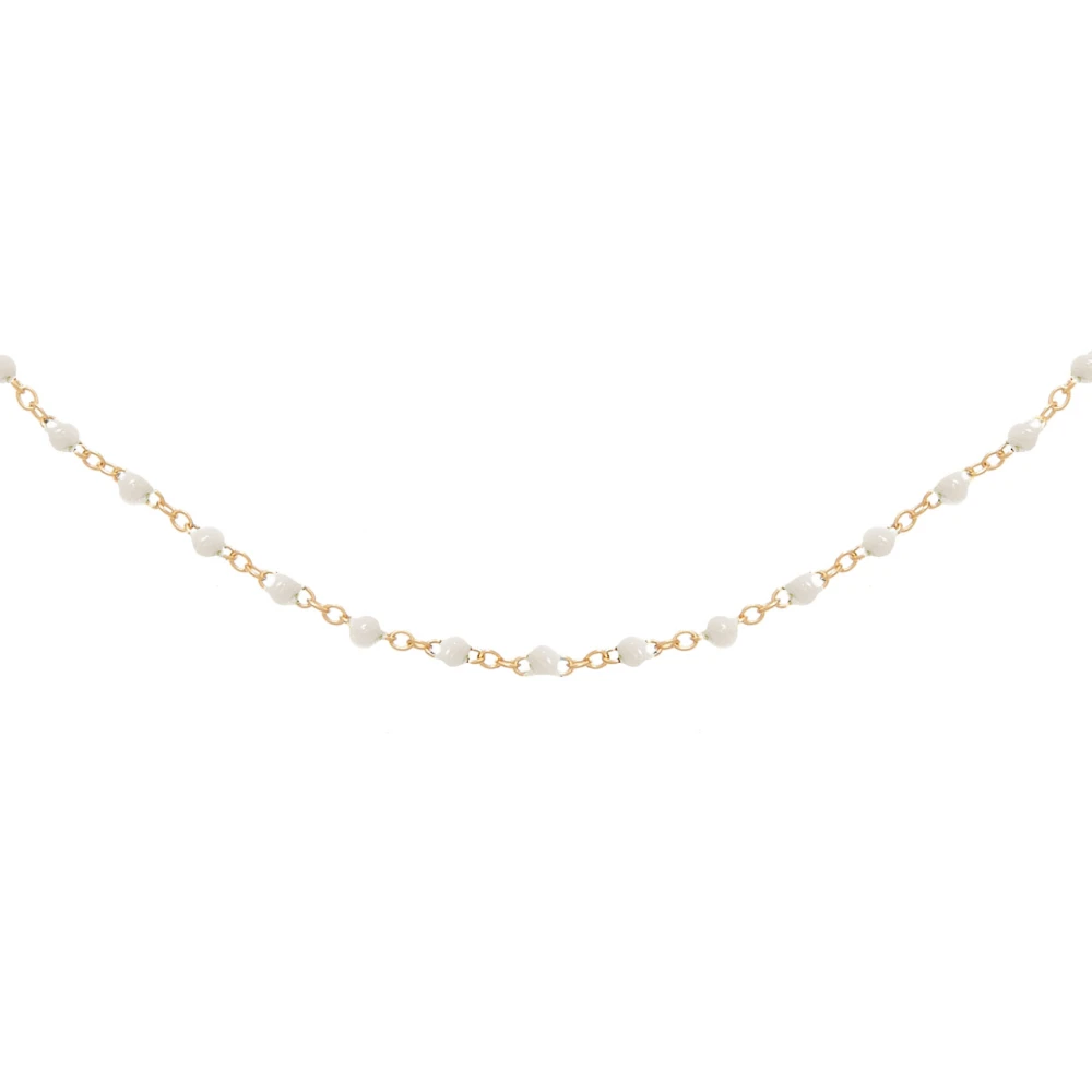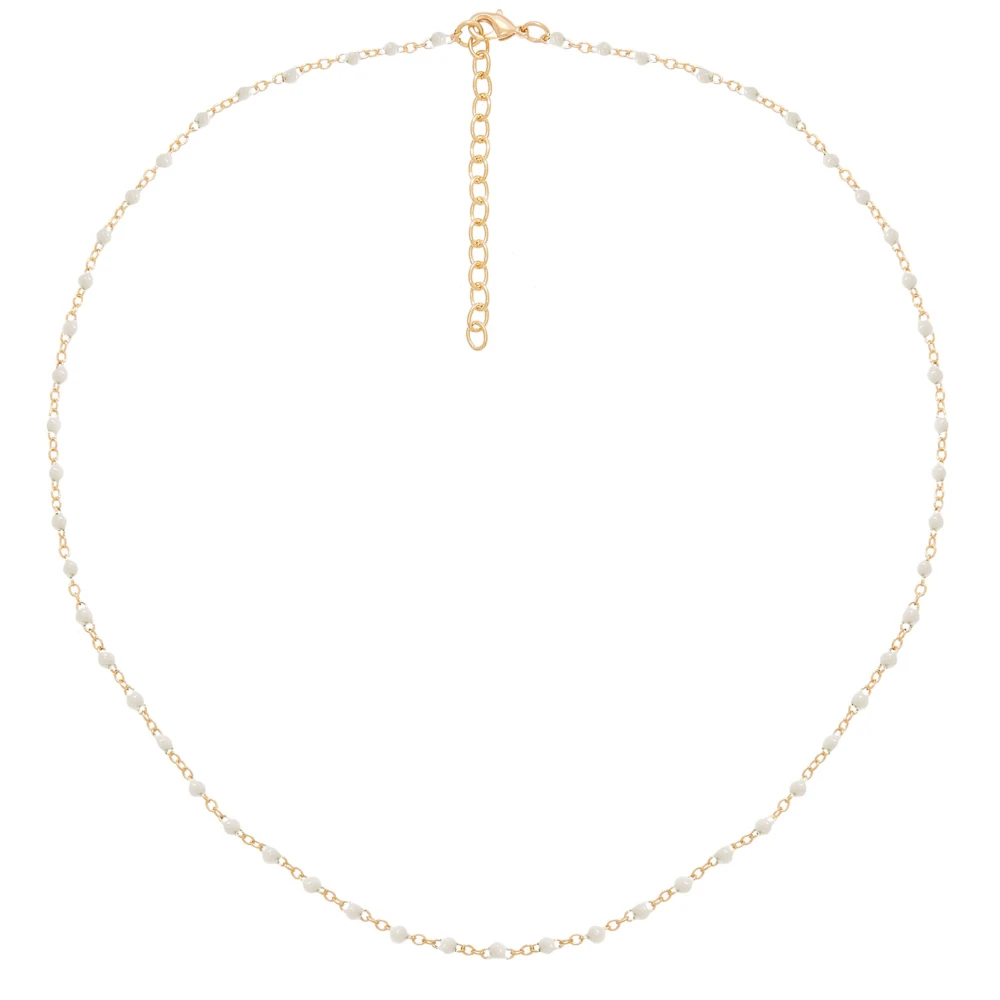 Ce collier signé By Jollia est composé d’une fine chaîne en plaqué or émaillée ornée de perles noires.