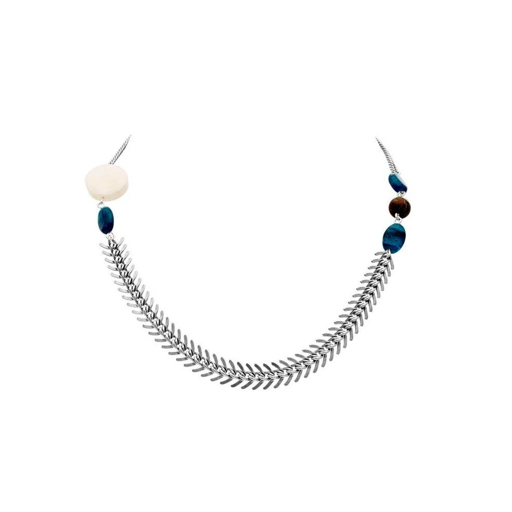 Ce collier est une véritable pièce de poésie. Ses courbes arrondies forment un épi de blé surmonté par des pierres naturelles bleu (aragonite) et bois d’un côté, soutenu par de la nacre de l’autre. Le tout pour un effet romantique et poétique. Emballage cadeau systématique, Satisfait ou Remboursé, Livraison 48h.