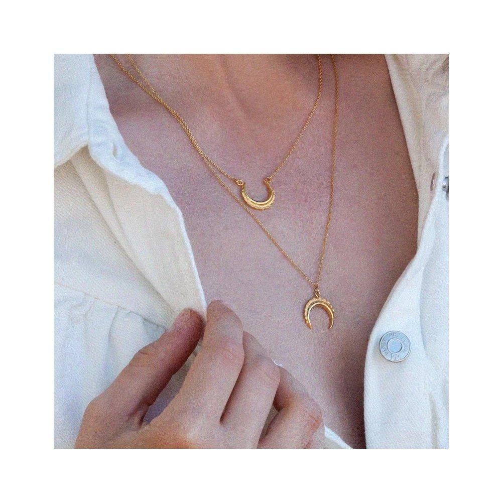 Collier doré à l’or fin 24k et signé Les Dissonances, composé d’un pendentif en forme de corne.