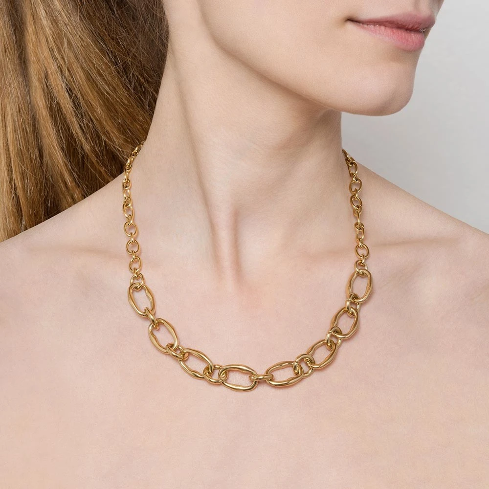 Collier maillons irréguliers en acier chirurgical trempé dans un bain doré signé Siloé.
